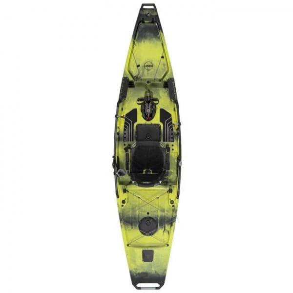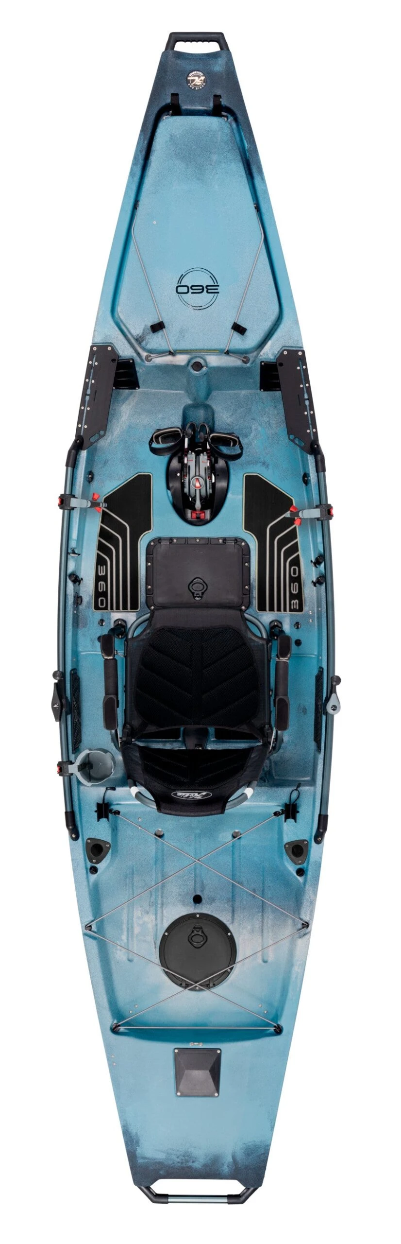 Featuring the latest evolution in Mirage Drive technology, the Hobie Pro Angler 360 XR 14′ has everything elite anglers are looking for in a fishing kayak. Thanks to its 360-degree steerable Mirage 360 XR Pedal Drive, the Pro Angler 360 is the most nimble and maneuverable kayak in its class. The new drive features a new lock out function for worry-free tracking, while Kick-Up Turbo Fins give the Mirage Drive more usability in shallow water conditions by allowing the fin mast to retract on impact, then automatically re-seat into position. The rest of the boat retains all the angler friendly features of the standard Pro Angler series including Vantage seating, Guardian retractable transducer mounts, noise reducing EVA traction pads, dual steering, H-Rial accessory system, integrated tackle and rod storage, and much more.